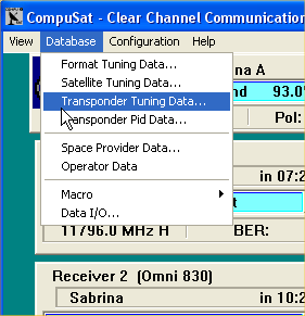 On the receive side, select Database/Transponder Tuning Data.