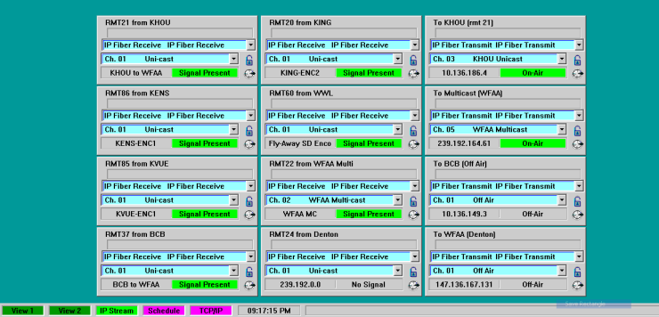 Using the familiar CompuSat receiver type interface, operators select channels from a list of choices to command the encoders and decoders to send and receive video. Timer events may also be defined to automate this process.
